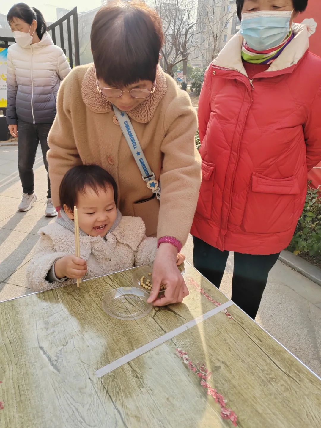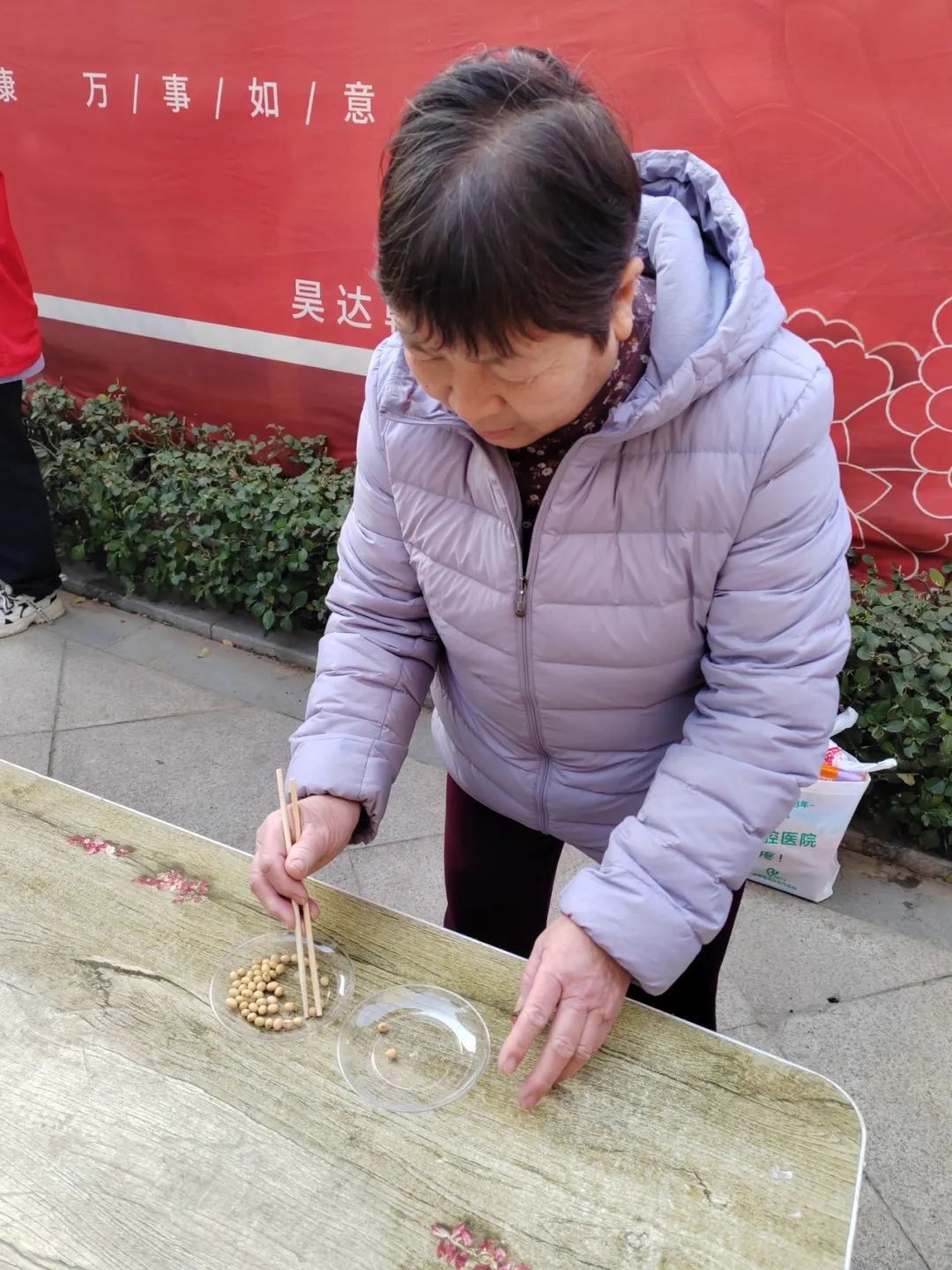 活动现场,豆子跳跃的清脆声与居民的欢笑声交织成春日里最温暖的乐章。比赛中,五人一组的选手们全神贯注,筷子翻飞间既考验耐心又比拼技巧。有人稳扎稳打“颗粒归仓”,有人手忙脚乱逗乐全场,年长的阿姨传授“夹豆秘籍”,小朋友们踮脚加油助威。