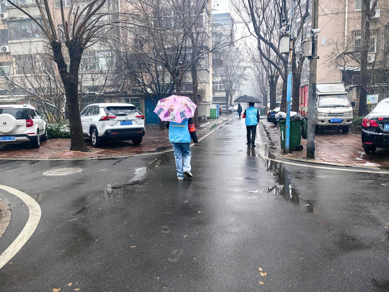 风雨无阻,是责任在肩;步履不停,是初心如磐。在瓢泼大雨中,巡查人员的衣服早已被雨水浸透,鞋子里也灌满了泥水,但没有人叫苦、没有人退缩。大家穿梭在小区楼栋、街巷角落,用脚步丈量责任,用细心消除隐患,用行动诠释担当。雨中那一个个坚定的身影,成为雨天里最动人的风景,也让居民在阴雨天气中感受到实实在在的安全感与归属感。