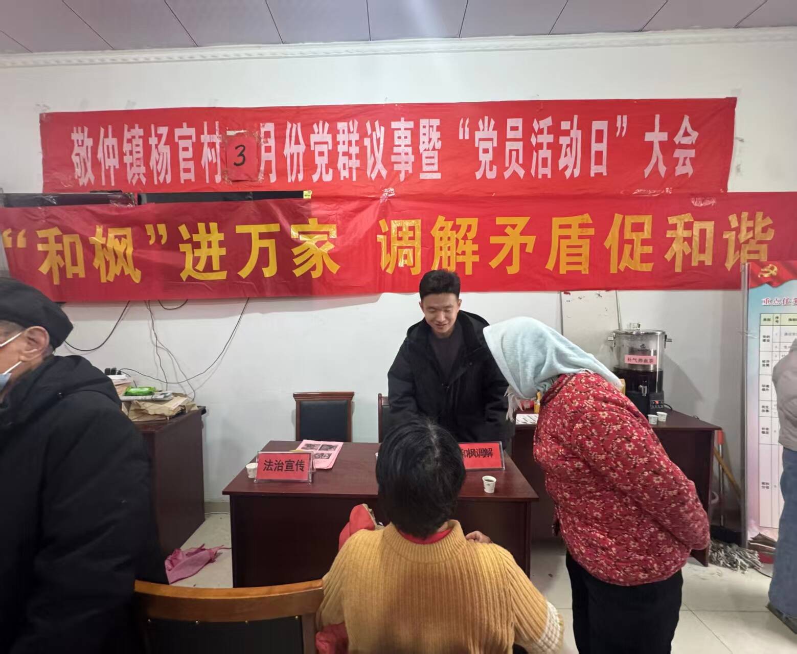 活动期间,司法所组织经验丰富的调解员和普法志愿者,与“爱心敬仲”志愿者团队紧密协作,深入到各村一线。通过设立法律服务咨询台、悬挂宣传横幅、发放《人民调解法》《民法典》等相关宣传资料等形式,向过往群众普及法律知识,讲解人民调解“便民、快捷、低成本”的优势,引导群众树立“遇事找法,解纷靠调”的意识。并耐心细致地解答群众提出的邻里纠纷、婚姻家庭、土地承包等法律疑问。同时对辖区内排查出的几起简易矛盾纠纷隐患,进行现场“面对面”情理法相结合的疏导劝解,成功化解了多起积怨较深的邻里矛盾,促进了家庭和睦与邻里和谐。