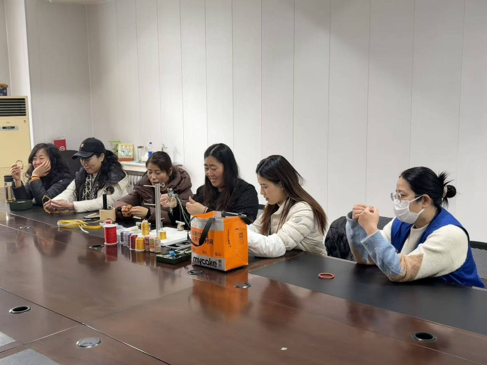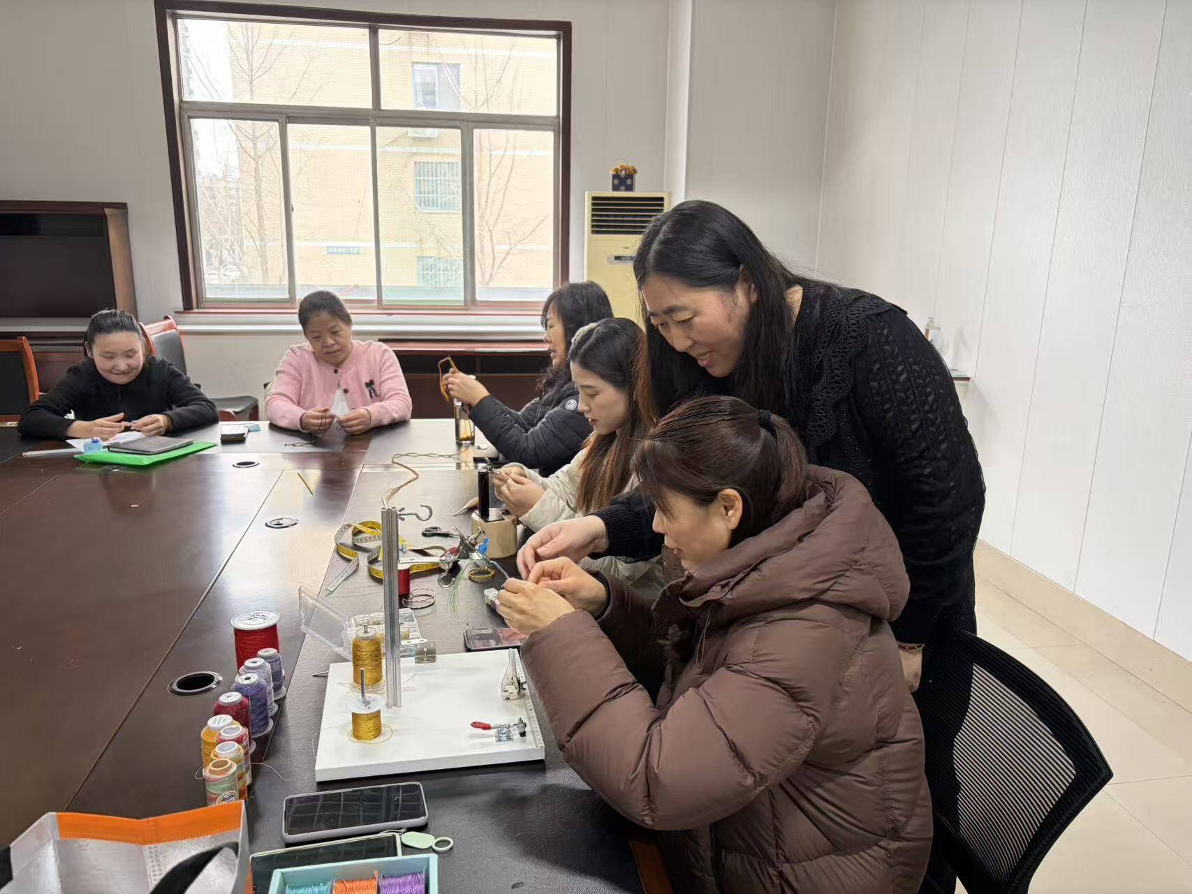 活动现场温馨有序,五彩编织线、各式配件整齐摆放,洋溢着浓厚的节日氛围。专业手工老师结合女性兴趣与节日特色,细致讲解手绳编织的基础针法、绕线技巧与配色方法,从起针、打结到收口、装饰,一步步耐心示范,手把手指导操作。面对大家的疑问,老师逐一解答,帮助零基础居民快速掌握要领,鼓励大家大胆尝试、创意发挥。