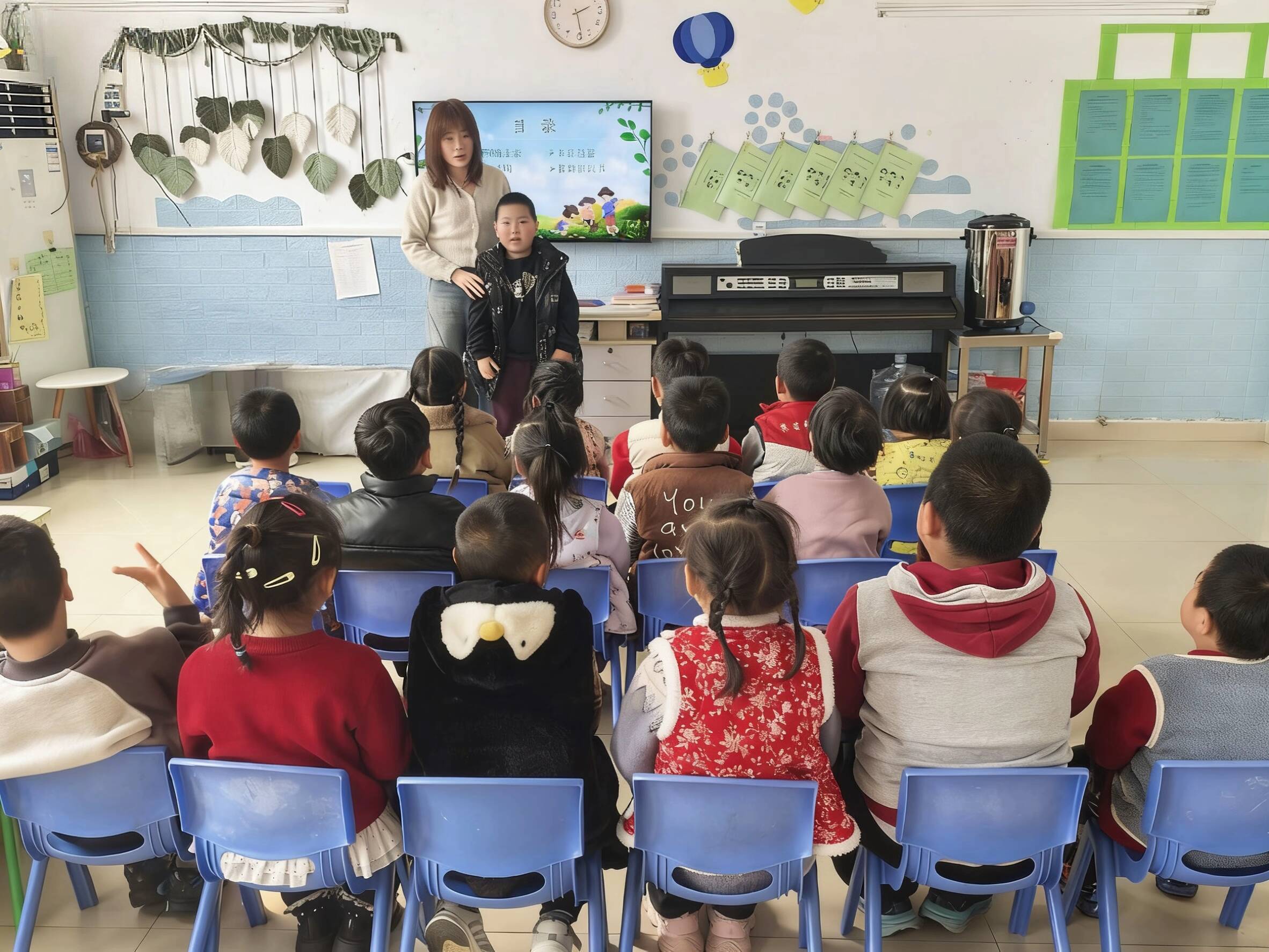 活动伊始,老师们通过生动的图片和视频,向孩子们讲解植树节的由来与意义。“树木可以净化空气”“小鸟住在树上”“大树给我们遮阴”……在互动问答环节,孩子们争先恐后地分享自己对树木的认识,童言稚语间流露出对绿色自然的喜爱。