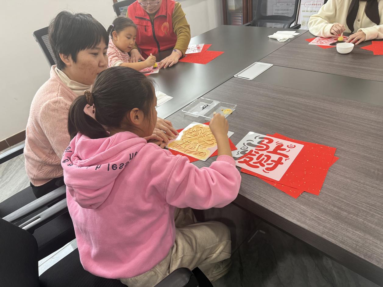 临淄融媒迅 元旦新年,为丰富社区居民文化生活,营造喜庆祥和的节日氛围,弘扬中华优秀传统文化,桑家社区新时代文明实践站于本周六上午成功举办了马年“拓福”亲子主题活动。活动吸引了社区内多组家庭踊跃参与,家长与孩子们齐聚社区居委会二楼会议室,共同体验古老拓印技艺的魅力,亲手印制承载美好祝愿的“福”字,迎接新年的到来。