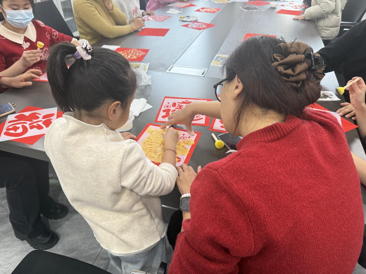 上午9时30分,活动准时开始。实践站工作人员首先为参与家庭简要介绍了拓印这项非物质文化遗产的历史渊源与艺术价值,激发了大家浓厚的兴趣。随后,在工作人员的悉心指导和家长们的协助下,孩子们纷纷动手实践。蘸取颜料、铺平宣纸、均匀按压、小心揭起……一道道步骤认真完成。活动现场欢声笑语不断,氛围温馨融洽。除了提供的经典“福”字图样,实践站还准备了多种款式模板供家庭选择,让创作更具个性。孩子们充分发挥想象力,在亲手操作中感受传统技艺的奇妙,最终,每位孩子都成功完成了三幅属于自己的“福”字拓印作品,作为一份独特的新年纪念。